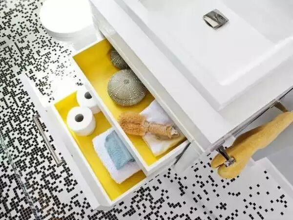 抽屉收纳是一种理想的方式,可以将那些不好整理的物件隐藏起来,壁挂式的设计不但可以让地板空间看起来更大,还有利于周围的清洁。