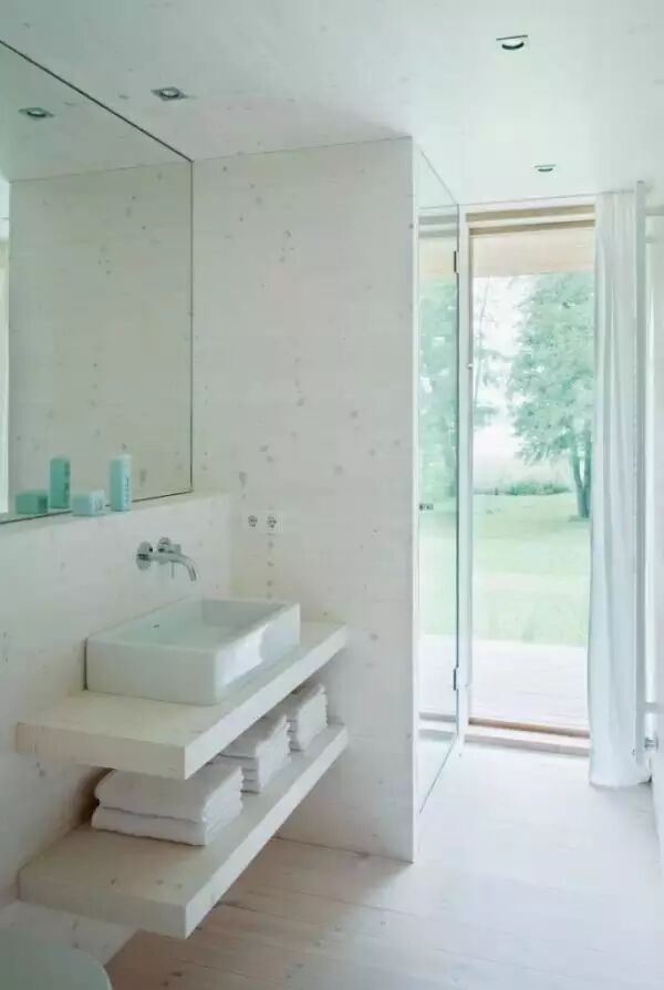如果你需要在壁挂式额外的空间进行储藏,可选择低板凳或额外的架子。