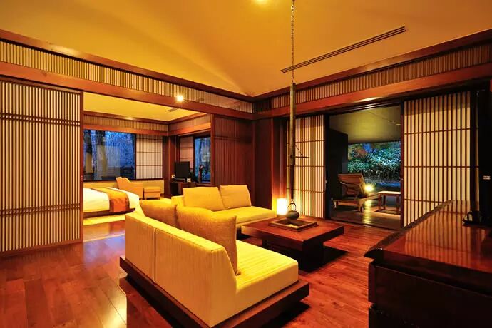 竹泉庄的贵宾套房面积超过100平米,尽显宽敞、豪华、高雅,房内设有会客室及专用私家露天风吕。其他一流设备包括咖啡机、冰箱和蓝光DVD播放机等,并设有wifi及网络可随时免费使用。